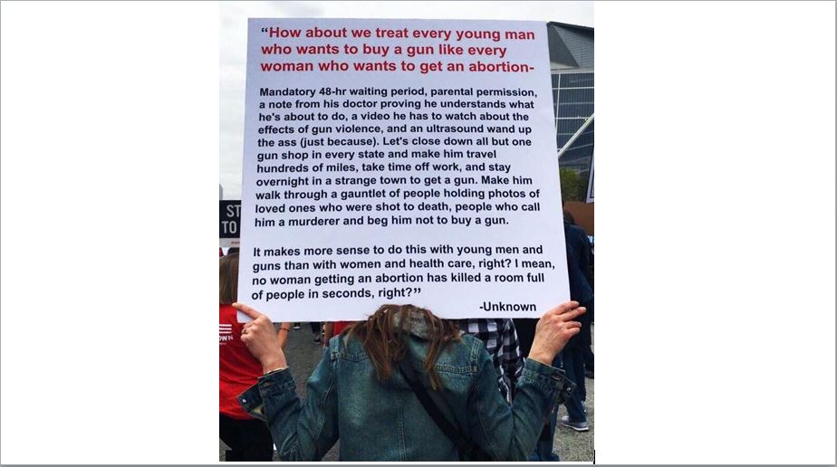 Bilder und Worte: „How about we treat every young man who wants to buy a gun like every woman who wants to get an abortion?“